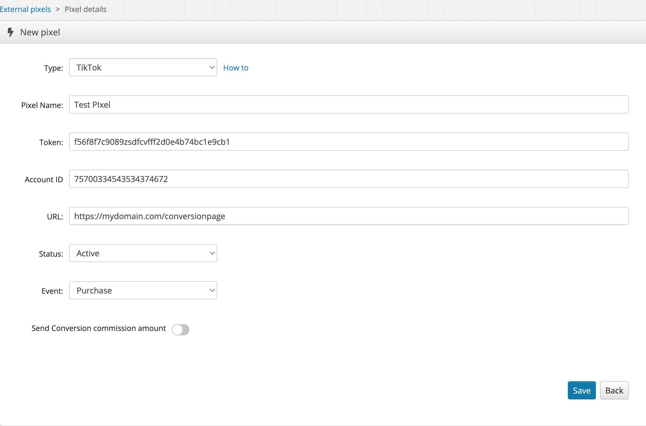 Step 3: Add your pixel data in the backoffice